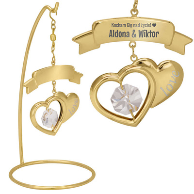 Figurka dla Zakochanych / Własny Grawer / Dwa serca / Pozłacana figurka / Ozdobny Kryształ /