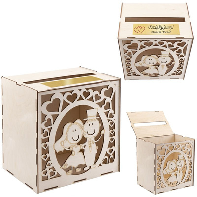 Drewniana skrzynka na koperty ślubne z Młodą Parą z Dedykacją