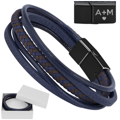 Granatowa bransoletka męska z ekoskóry z grawerem na rocznicę