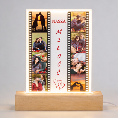 Lampka LED z kliszą filmową i zdjęciami – personalizowana „Nasza Miłość”