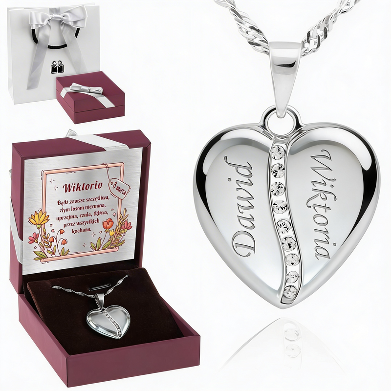 Naszyjnik pr.925 serce z kryształkami z grawerem i dedykacją