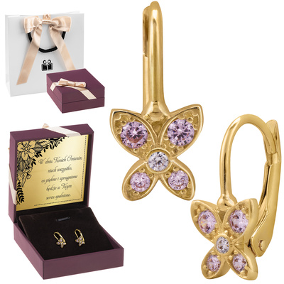 Kolczyki na Dzień Kobiet – złote kwiatki 333 z cyrkoniami, dedykacja