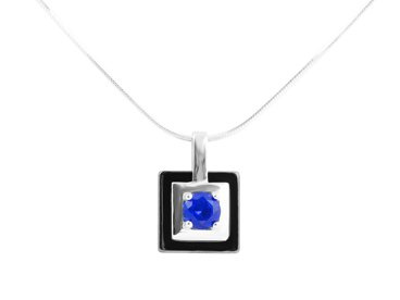Srebrna zawieszka pr.925 czarny kwadrat z niebieskim oczkiem PREZENT