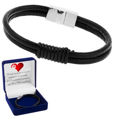 Męska bransoletka 316L z lakierowanym rzemykiem i dedykacją