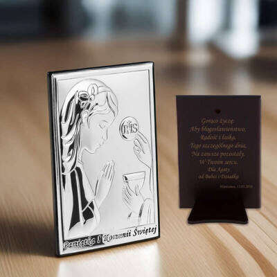 Obrazek Srebrny Dziewczynka Pamiątka na I Komunię Św. Grawer