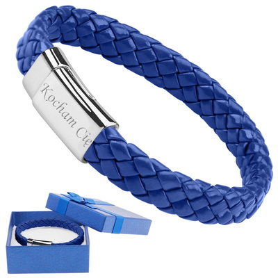 Bransoletka ze stali szlachetnej niebieska eko skóra 17 cm Grawer