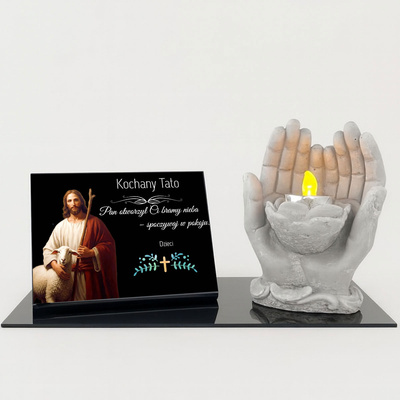 Personalizowana tabliczka nagrobna z dłońmi i świeczką LED
