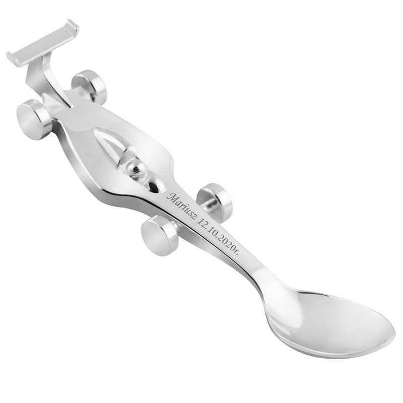 Posrebrzana łyżeczka wyścigówka Prezent Chrzest Roczek GRAWER