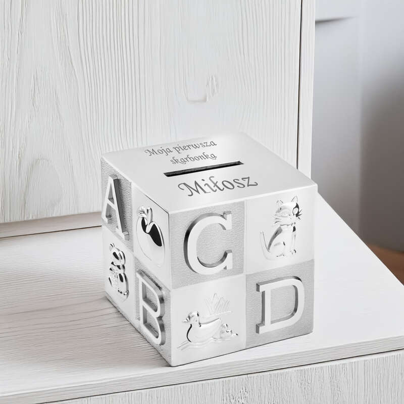 Skarbonka ABC z Grawerem Chrzest Roczek Urodziny