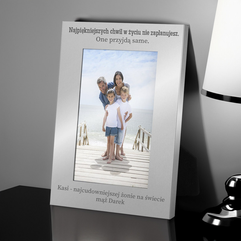 Srebrna metalowa ramka na zdjęcie z personalizowanym grawerem