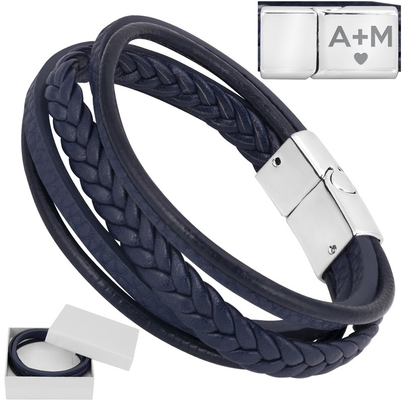 Bransoletka męska granatowa z ekoskóry i stali z grawerem