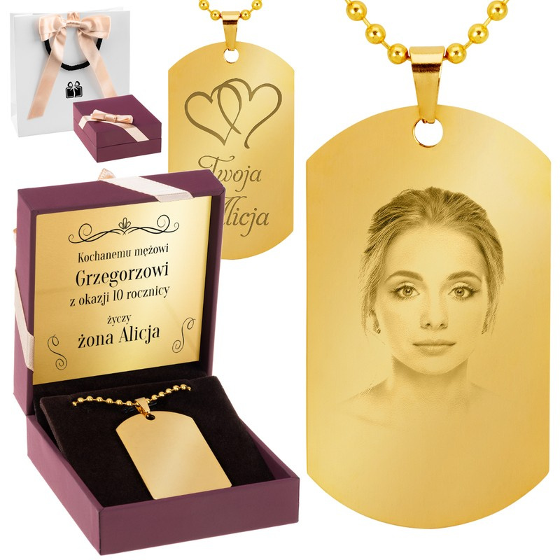 Złoty nieśmiertelnik stal szlachetna z grawerem i dedykacją