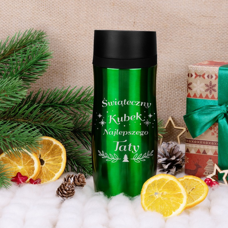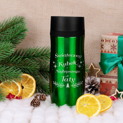 Świąteczny zielony kubek termiczny z grawerem laserowym