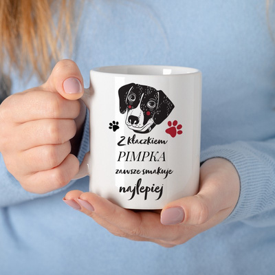 Kubek ze zdjęciem Z kłaczkiem smakuje lepiej z imieniem psa