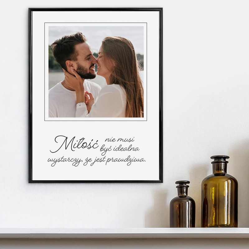 Plakat ze zdjęciem dla chłopaka dziewczyny / Prawdziwa miłość / Prezent na walentynki urodziny Dzień Chłopaka / 30x40 cm / szkło