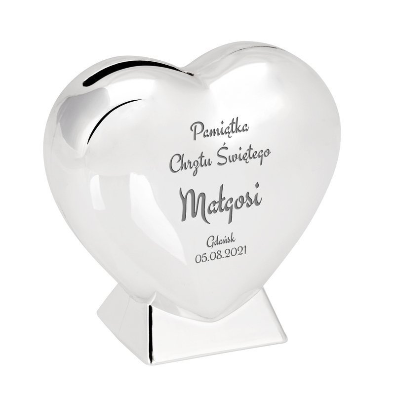Srebrna Skarbonka Serce Pamiątka na Chrzest Grawer