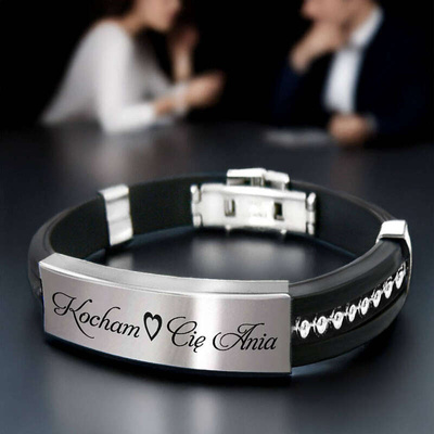 Bransoletka ze stali szlachetnej 316L i kauczuku Prezent z Grawerem