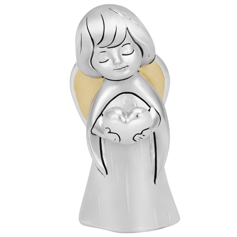 Figurka anioła z sercem, posrebrzana na Chrzest