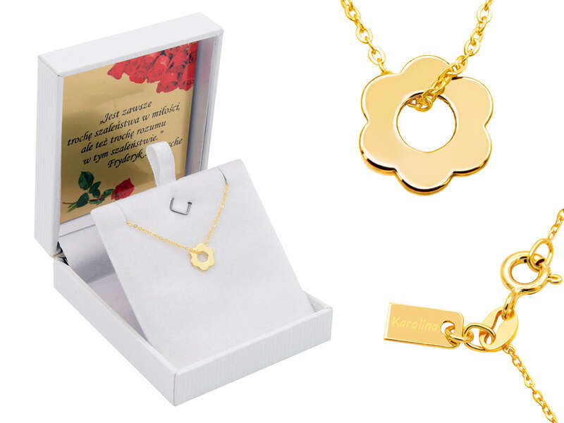 Dzień Matki: Pozłacany naszyjnik kwiatek 925 z grawerem w etui