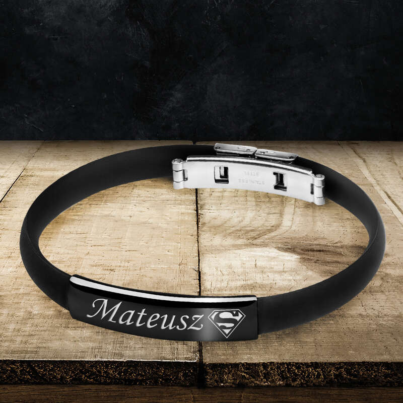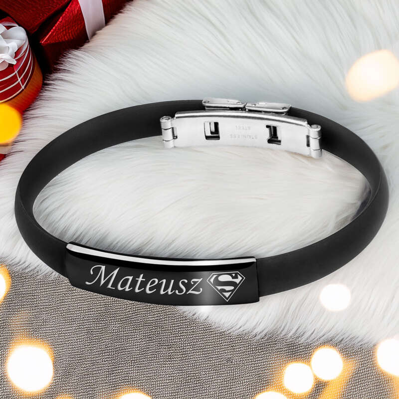 Bransoletka z kauczuku i czarnej stali szlachetnej z Grawerem / prezent dla męża, chłopaka / pakowanie na Walentynki