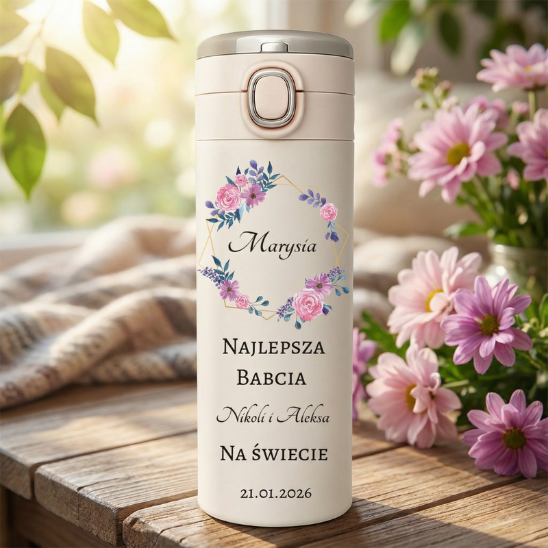 Personalizowany kubek termiczny dla Babci ze zdjęciem i LED
