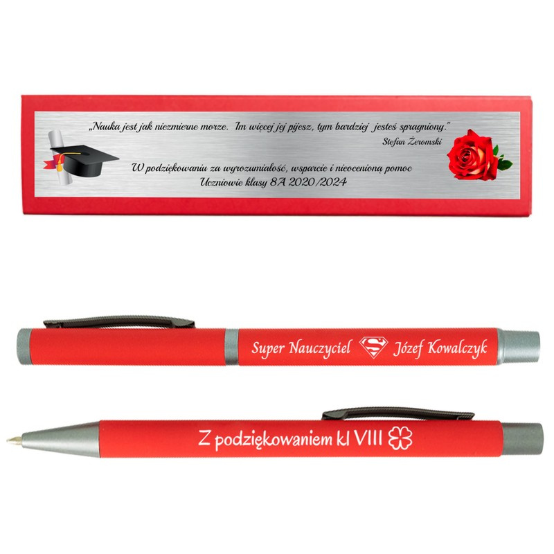 Zestaw piśmienniczy Jetmore, czerwony z grawerem /Długopis i Pióro Kulkowe/ Gadżet reklamowy / Prezent dla nauczyciela kolegi z Grawerem i Dedykacją