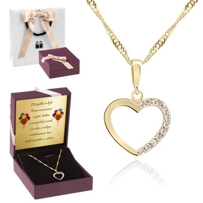 Złoty wisiorek w kształcie serca z cyrkoniami z łańcuszkiem pr. 333 z Dedykacją