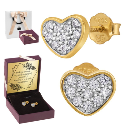 Na rocznicę pozłacane kolczyki serca srebro 925 z dedykacją