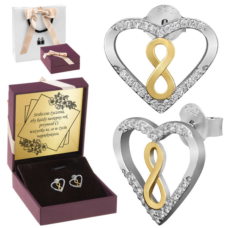 Na Walentynki kolczyki nieskończoność srebro 925 z dedykacją