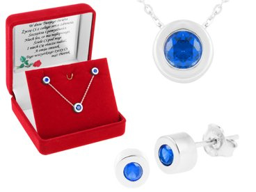 Komplet biżuterii pr. 925 z okrągłą zawieszką i szafirową cyrkonią DEDYKACJA