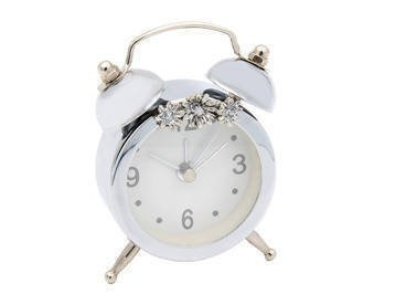 Posrebrzany metalowy zegar kwarcowy na biurko z ramką GRAWER PREZENT