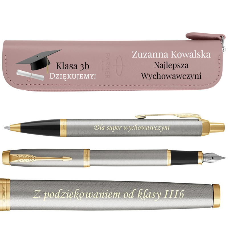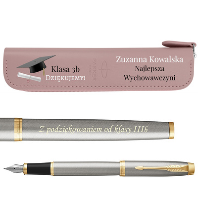 Prezent dla nauczyciela: Parker IM Brushed GT z grawerem i etui UV