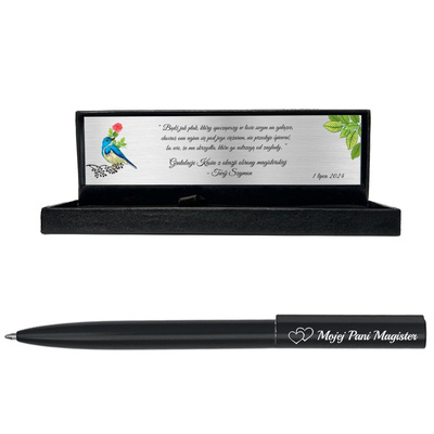 Czarny długopis i ołówek 2w1 / Prezent dla nauczyciela, ucznia w pudełku / Prezent z Grawerem