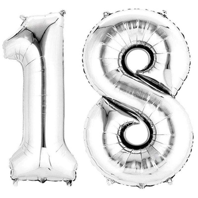 Balony Foliowe / Cyfry / 18 Urodziny / Srebrne / 100 cm