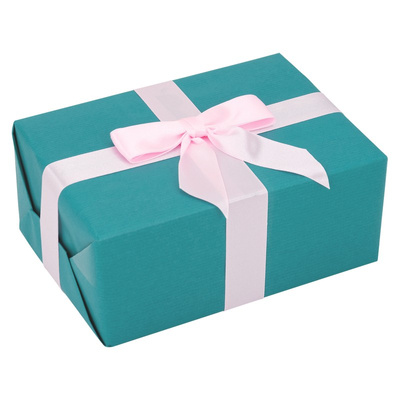Ręczne pakowanie prezentu - morski papier i różowa wstążka
