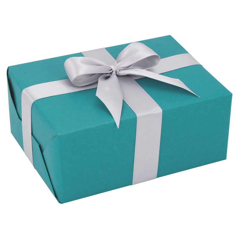 Ręczne pakowanie prezentu - morski papier i szara wstążka