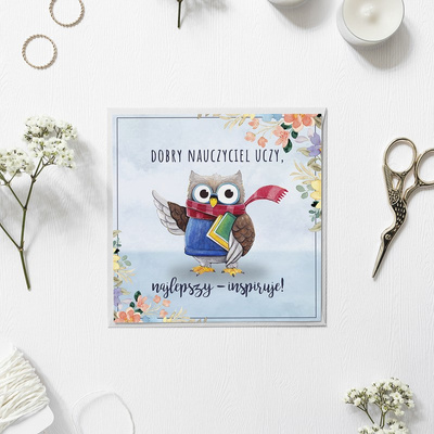 Kartka dla nauczyciela / Dzień Nauczyciela / zakończenie roku szkolnego / Mądra sowa