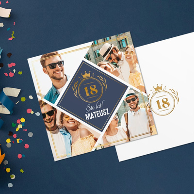 Kartka na 18 urodziny ze zdjęć, kolaż granatowy, personalizowana