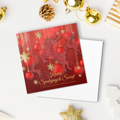 Kartka świąteczna z reniferami i personalizowanymi życzeniami