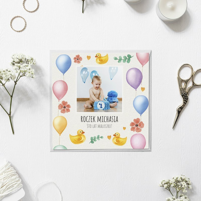 Balonik dla maluszka - kartka na pierwsze urodzinki