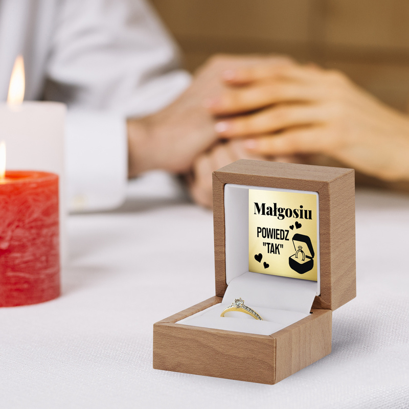 Złote otwierane pudełeczko na pierścionek / pudełko z dedykacją