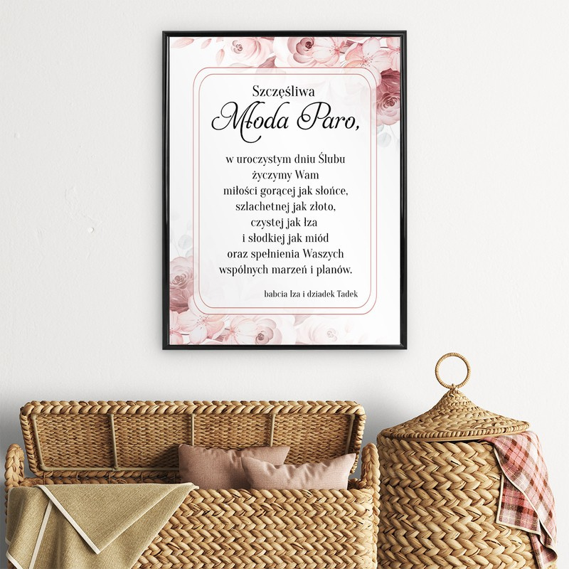 Plakat w ramce / Prezent na ślub / Czarna ramka 30x40 cm z plexi
