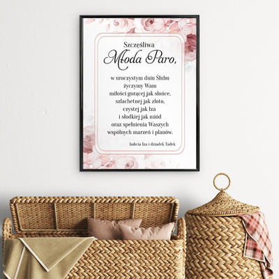 Plakat z życzeniami / Prezent na ślub / Czarna ramka 30x40 cm z plexi