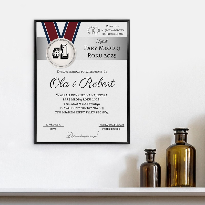 Plakat w w ramce na ślub / Dyplom dla najlepszej pary / Czarna ramka 30x40 cm z plexi