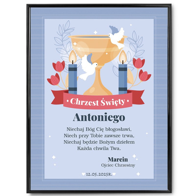 Plakat na Chrzest z Dedykacją / Personalizowany / Pamiątka Chrztu dla Chłopca / Niebieski / Szkło