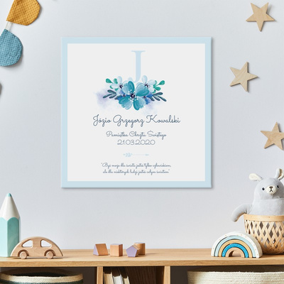 Niebieska litera - obraz na płótnie z życzeniami dla dziecka 40x40 cm