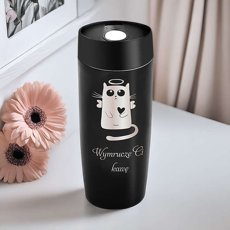 Kubek termiczny Czarny 320 ml prezent walentynki urodziny Grawer