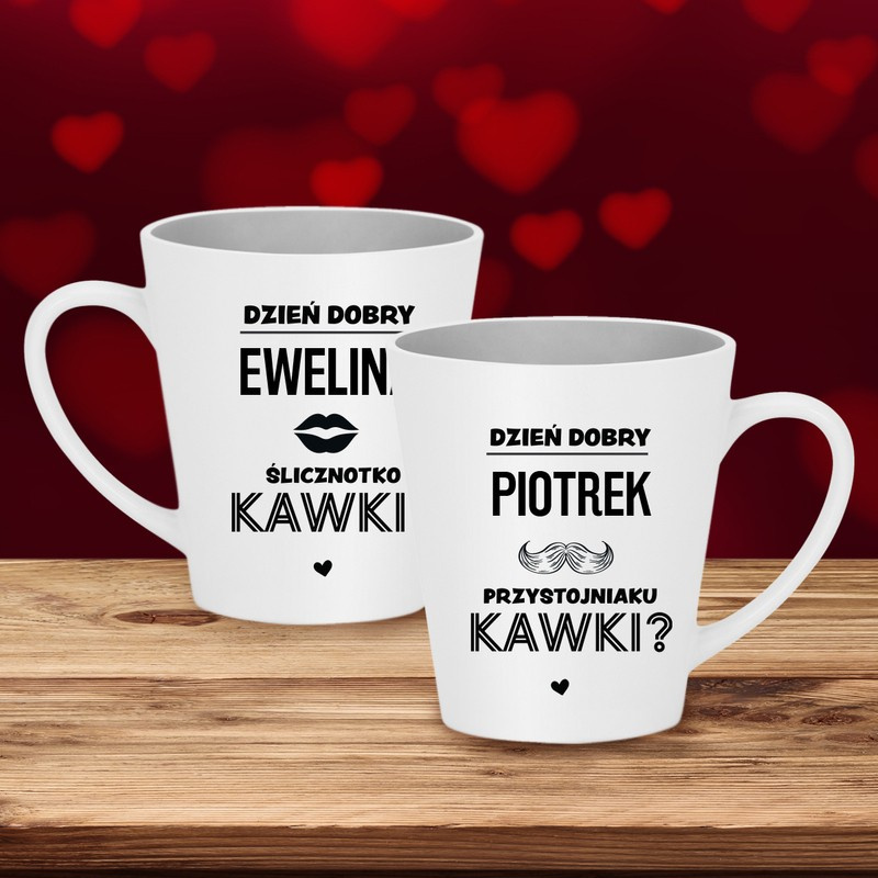 Walentynki: zestaw 2 kubków z imionami i tekstem na kawę