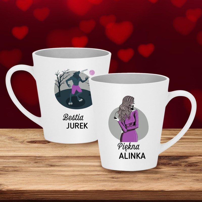 Walentynkowy zestaw 2 kubków Piękna i Bestia z imionami