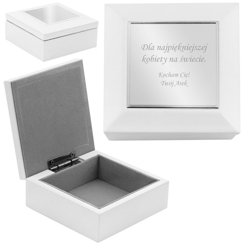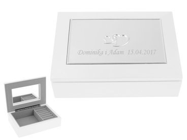 Rocznica ślubu to doskonała okazja do wręczenia kobiecie biżuterii. Podarunek świetnie prezentował się będzie w odpowiednio dobranej do okazji szkatułce. Szkatułka z grawerunkiem, na którym wyznamy raz jeszcze uczucia ukochanej to idealny pomysł na podziękowanie za wspólnie spędzone lata. Taki upominek z pewnością wzruszy i uraduje małżonkę.